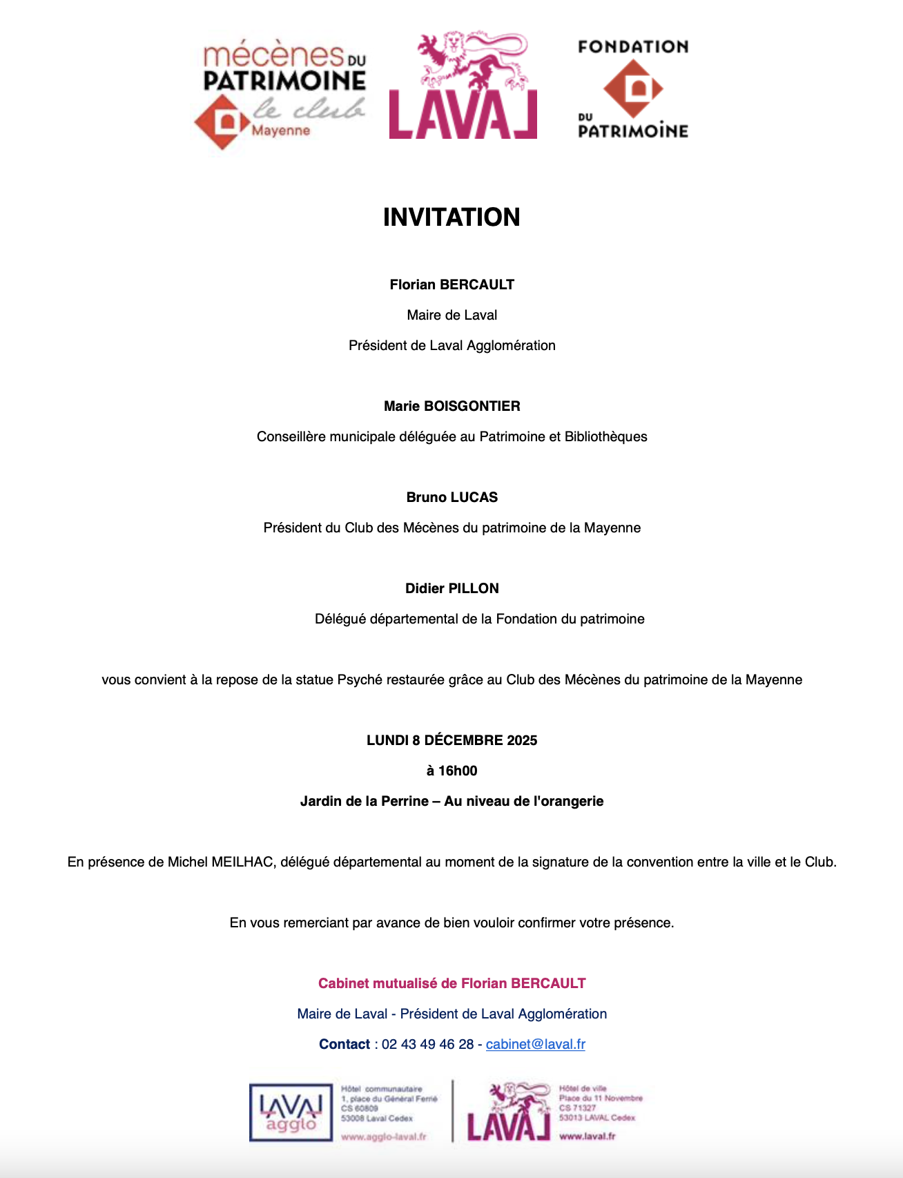 Ouest France du 8 décembre 2025 : repose de la statue Psyché restaurée